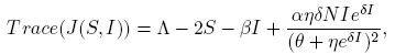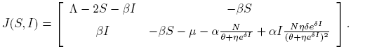 The Jacobian matrix (5) evaluated in the equilibrium point (S*, I*) is given by