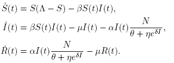 (3) All parameters are positive constants, with the following interpretation; Λ is the carrying capacity in the absence of disease, μ is the birth-death rate, β is the infection coefficient. In the per-capita treatment rate,