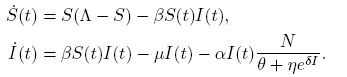 (22)where G(y) = (A1y2 + B1y + C1), y = eδI , A1 = β2η2S, B1 = η(2β2θS + αδΛN − 2αδNS − αδβNI) and C1 = β2θ2S.