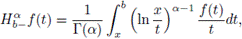 and a < x < b. The left and right-side Hadamard fractional integrals of order α > 0 of a function f, are given by