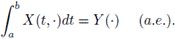is called mean-square integral of the process X(t, ·) on [a, b], if the following identity holds: