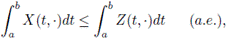 where X(t, ·) ≤ Z(t, ·) in [a, b].