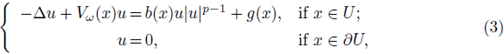 So, it is natural to consider a nonhomogeneous term on the right-hand side of (3). Here we desire to cover not only high-powers for p, but also the effect on the random term Vw. Our results work well for b ≡ 1, and in this case (3) is precisely the perturbation of (2) by the non-homogeneous term g. Also, the boundedness of U, b, g are not essential and could be circumvented by working in other settings, such as homogeneous weighted L∞-spaces, PMa-spaces and anisotropic Lebesgue spaces (see, e.g., [11], [12], [13], [14], [15]). However, here this condition will simplify matters a bit. The random potential Vw is constructed as follows: given a continuous function