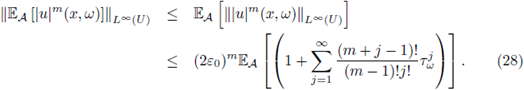 does not satisfy the equation (3), even if we replace the random potential by its mean. However, we are able to obtain some information on the average and moments of the random solution uw. Let us mention that, when dealing with the random variable ω → uw, the expectation has to be understood in the Bochner sense (see Section 2). Note also that in fact a solution
