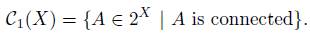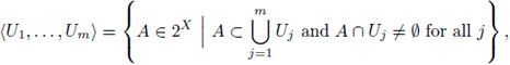 where U1,..., Um are open subsets of X. If f: X → Y is a map, then 2f: 2X → 2Y given by 2f(A) = f(A) is a map [18, (1.168)]. Observe that there exists a copy of X inside 2X, namely, F1(X) = {{x} | x e X}. The map ξ: X → F1(X) given by ξ(x) = {x} is an embedding. We say that T is continuous on singletons provided that T|F1(X): F1(X) → 2X is continuous. For more information about the set function T see [8, Chapter 3]