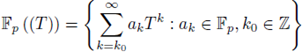 the field of formal Laurent series with coefficients in a finite field with p elements. Let