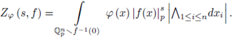 , s ∈ C, and dnx denotes a normalized Haar measure of the topological group (