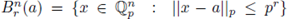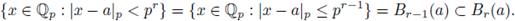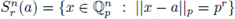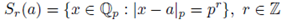 the radii are always integer powers of p; for the sake of brevity we just use the power in the notation Br(a) and Sr(a). On the other hand, since the powers of p and zero form a discrete set in