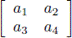 Let a1a2a3a4 be a word to be transmitted. First, write it as a matrix of size 2 x 2 :