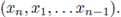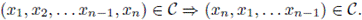 Notice that this implies that if a given word (x1,x2,... xn-i,xn) is in the code, then all its circular permutations are in the code.