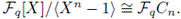 where [f] denotes the class of the polynomial f ∈ 𝔽q [X] in Rn, is a linear isomorphism, and it is easy to see that a linear subspace C in