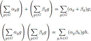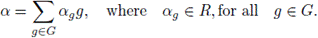 Recall that the group algebra of a finite group G over a field R is the set of all formal linear combinations: