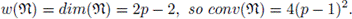 with dim(I) = p, w(I) = p and dim(J) = p2- 1, w(J) = 2, and thus conv(I) = p2 and conv(J) = 2(p2- 1).