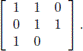 Then extend it to a matrix of size 3 x 3 (but without the entry corresponding to position 3, 3) in such a way that each row and each column has an even number of digits equal to 1: