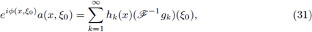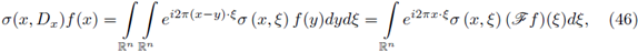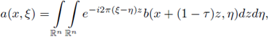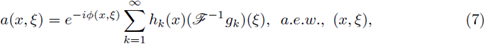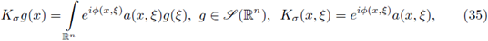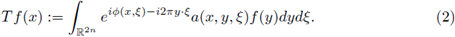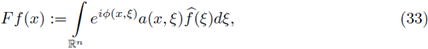 According to the theory of FIOs developed by Hörmander [32], the phase functions ϕ are positively homogeneous of order 1 and they are considered smooth at ξ ≠ 0, while the symbols are considered satisfying estimates of the form