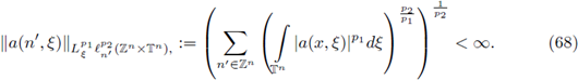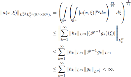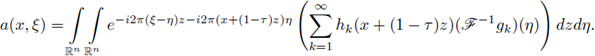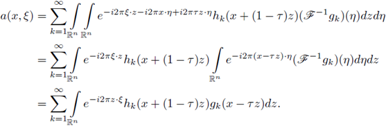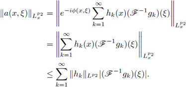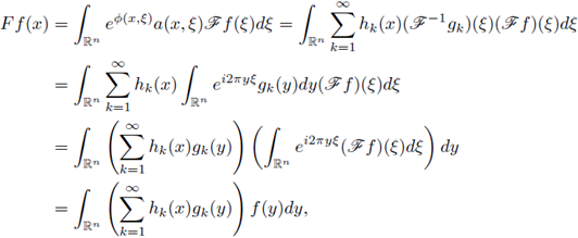 So, we have proved the first part of the theorem. Now, if we assume that the symbol a of the FIO F satisfies the decomposition formula (32) for fixed sequences hk in LP2 and gk in