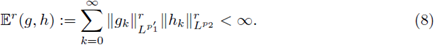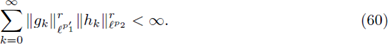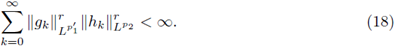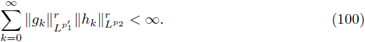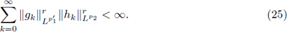If we assume that F : LP1 (M) → LP2 (M) is r-nuclear, then we have a nuclear decomposition for its kernel, i.e., there exist sequences hk in LP2 and gk in