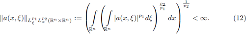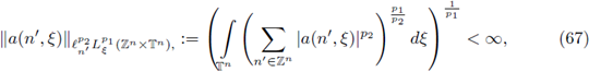 Theorem 1.2. Let 0 < r ≤ 1, and let us consider a measurable function a(·, ·) on ℝ2n. Let 1 < p1≤ 2, 1 ≤ p2< ∞, and F be the Fourier integral operator associated to a(·, ·). Then, F : LP1 (ℝn) → LP2 (ℝn) is r-nuclear if the symbol a(·, ·) admits a decomposition of the form