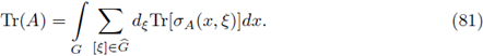 Palabras clave: Operador integral de Fourier, operador nuclear, traza nuclear, traza espectral, variedad compacta homogénea.