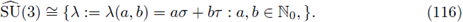 SU(3) = {A := \(a, b) = aa + br : a,b ∈ N0, }. (116)
