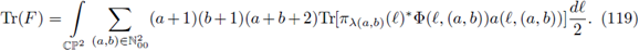 for those distributional symbols considered above. As a consequence of Remark 4.5, if F : Lp(ℂℙ2) → Lp(ℂℙ2), 1 ≤ p < ∞, is r-nuclear, its nuclear trace is given by