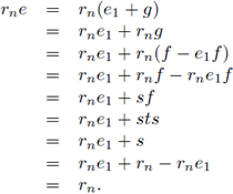 Proposition 6.7. The ring R is unital if, and only if, there is e G R such that for all r R the relations er = re = r hold.