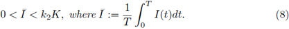 Theorem 2.4. Assume k1, k2, k-1, K > 0, and I(t) is a non negative, non constant continuous T -periodic function. If β > 0 and α = 1, then we get: