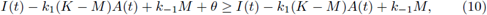 with θ and M < K positive constants to be fixed later. Also we take B(t) = M. To obtain that (A(t), B(t)) are a supersolution pair, it must be fulfilled that