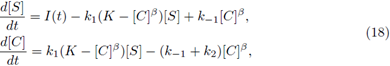 To model the dynamics of the concentrations of the chemical species involved, we also can consider the generalized mass-action law (see [3]). Under this law we obtain a more general enzyme catalysed system than (3), written as