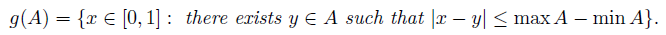 Example 5.8.Define g : F∞([0, 1]) → F∞([0, 1]) by g(A) = {|x − y| : x, y ∈ A} for each A ∈ F∞([0, 1]). Observe that g is a mapping.