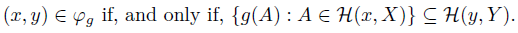 (Y ). Given a mapping g : H(X) → H(Y ), define the relation φg from X to Y as follows: