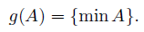 for each A ∈ H([0, 1]). Notice that g is a mapping. First, to see that (1)g is satisfied, we shall prove that φg = [0, 1] × {0}. From the definition of φg, it follows that the inclusion [0, 1]× {0} ⊆ φgholds. On the other hand, if (a, b) ∈ φg, then b ∈ φg({0, a}) = {0, min{0, a}} = {0}. Hence, we conclude that φg = [0, 1] × {0}.