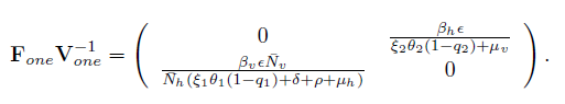 (5)Since the basic reproductive number, commonly denoted by R0 (but in this case denoted by R0one ) is the average number of secondary infective generated by a single infective during the curse of the infection in a whole susceptible population, it is a threshold for determining when an outbreak can occur, or when a disease remains endemic. Using the next generation operator method [30] on the system (3), the Jacobian matrices Fone and Vone evaluated in the DFE are given by