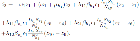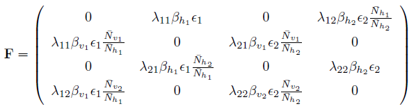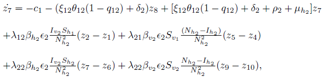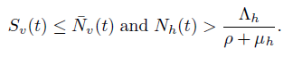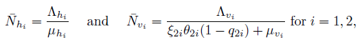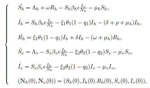 , where βh represents the probability of a human being infected by the bite of an infected mosquito, and ϵ represents the per capita biting rate mosquitoes. Similarly, we define the force of infection for mosquitoes as βvϵ