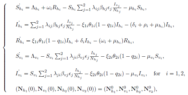 (3)where (Nh(0), Nv(0)) denotes a initial condition and Nh and Nv are vectors formed by Sh, Ih, Rhand Sv, Iv, respectively.