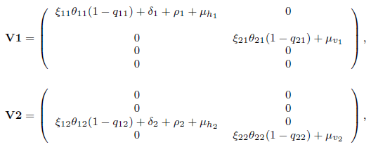 Remark 2.1. The novelty in this work involves the parameters ξi, θiand qiwith i = 1, 2. Their interpretation and values are given in Tables 1 and 2 from Section 2.2. A complete description and interpretation of the others parameters involved in the model (3) can be found in [27].