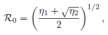 From above, the coefficients a0 and a1 are positive, while the sign of the coefficient a2 depends of R0one . From the Routh–Hurwitz criterion [13], we can guarantee that the quadratic equation (13) has roots with negative real part if, and only if, its coefficients are positive and the following determinants called minors of Hurwitz are positive: