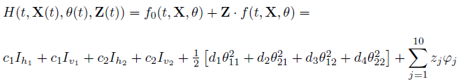 defines the absolute costs associated with the control strategies, such as, implementation, ordering, distribution, marketing, among others. For calculation purposes, we will denote the integrand of the performance index given on (27) as