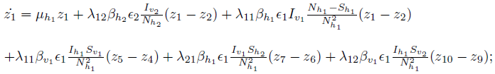 (34)where Z = (z1, z2, ..., z10) is the vector of adjoint variables which determine the adjoint system, and