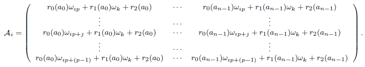 Expandiendo los productos de Kronecker de Ai , podemos escribir dicho bloque como un arreglo de tamaño n × p, es decir: