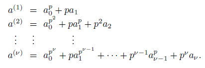 Dados a = (a0, a1, . . . , aν−1, aν, . . .) ∈ QN una sucesión y p un número primo, denotaremos mediante P(a) a la sucesión:
