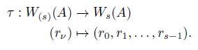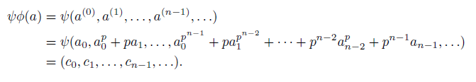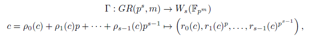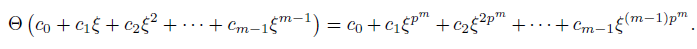 ps para 0 ≤ i ≤ m − 1, llamada representación aditiva. Dicha representación es de suma utilidad cuando se desea trabajar con morfismos sobre el anillo de Galois R en particular resulta conveniente para definir el automorfismo generalizado de Frobenius: Θ : R → R el cual es un automorfismo que fija a los elementos del subanillo