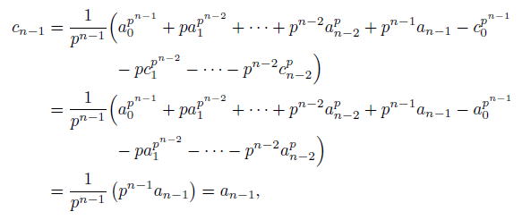 Veamos que c (i) = bi para cada i ∈ {0, 1, . . .}, por (5) se tiene que c0 = b0. Supongamos que para i < n − 1, c (i) = bi , sustituyendo cn−1 según (5) tenemos: