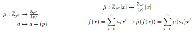 son homomorfismos sobreyectivos llamados µ-reducción y µˆ-reducción respectivamente. Puede apreciarse que µˆ es una extensión natural de µ sobre el anillo de polinomios