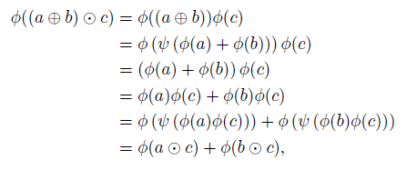(9)Ahora, de la definición de ϕ, si c = a ⊕ b y d = a