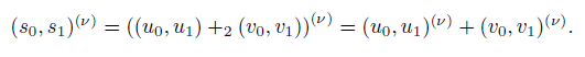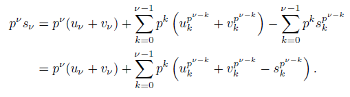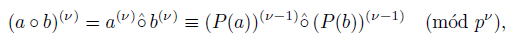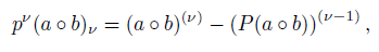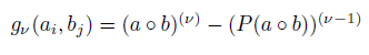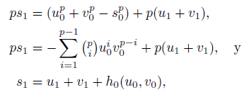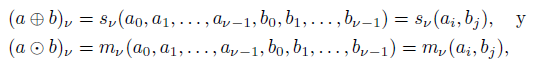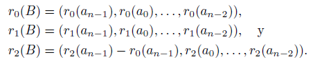 (10)Observese que de (5), cada a (ν) es una expresión polinomial con coeficientes racionales en las componentes a0, a1, . . . , aν, omitiendo todas aquellas cuyo subíndice es mayor que ν. De manera análoga, para las expresiones en (10) existe, a su vez, para cada una de éstas una expresión polinomial con coeficientes racionales en ai , bj con i, j ∈ {0, 1, . . . ν} que las representa.