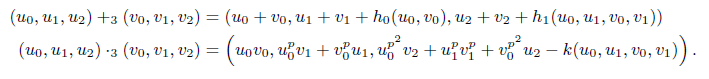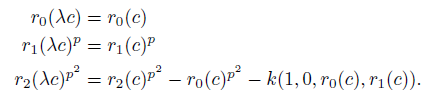 (23)Es fácil ver de lo anterior que k(1, 0, r0(c), r1(c)) = 0 y aplicando el inverso del automorfismo de Frobenius a (23) en el campo finito
