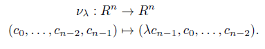 Demostración. Sea A = (a0, a1, . . . , an−2, an−1) ∈ Rn y denotemos por B = (b0, b1, . . . , bn−1) = νλ(A), entonces: