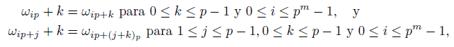 para i = 0, 1, . . . , pm−1 − 1 y k = 0, 1, . . . , p − 1. Entonces los elementos del campo finito