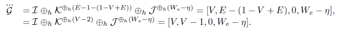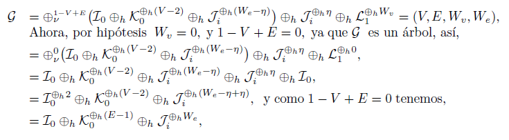 un grafo árbol (1 − V + E = 0), con peso cero en sus vértices. Entonces G puede escribirse como combinación lineal de los grafos básicos I = [2, 1, 0, 0],J = [2, 1, 0, 1] y K = [3, 2, 0, 0] y usando la cirugía horizontal ⊕h. Además, G puede escribirse como: